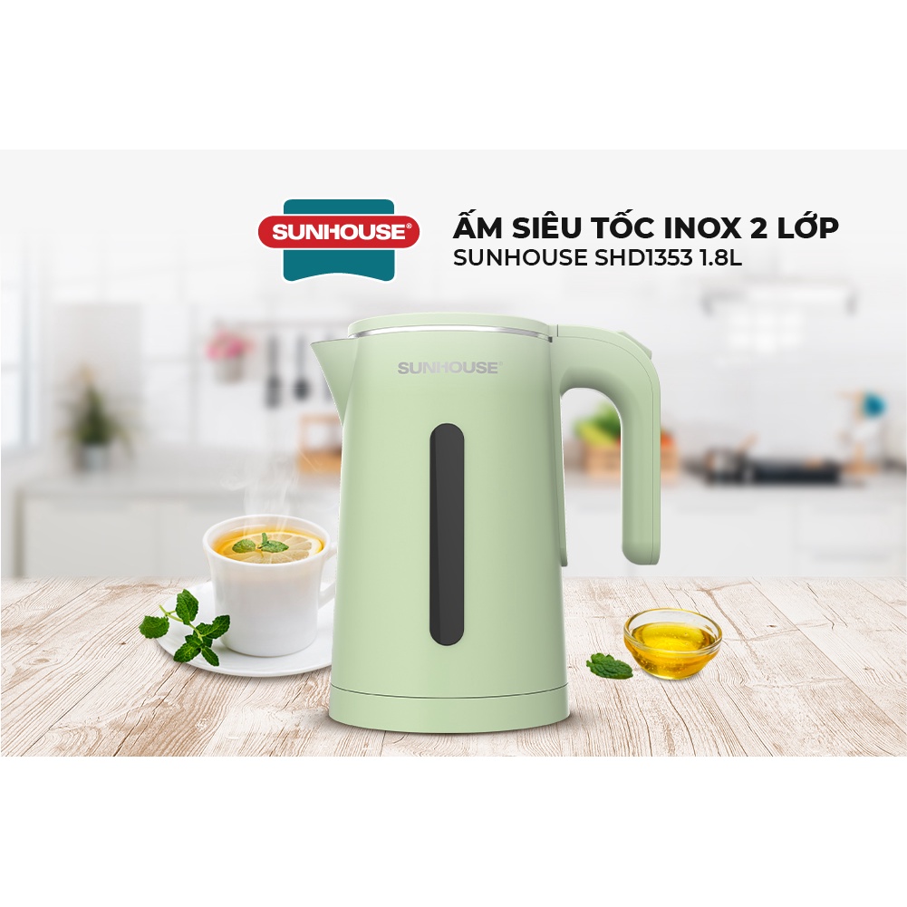 Giới thiệu [Mã ELHADEV giảm 4% đơn 300K] Ấm Đun Siêu Tốc SUNHOUSE 2 Lớp Dung Tích 1.8L SHD1353