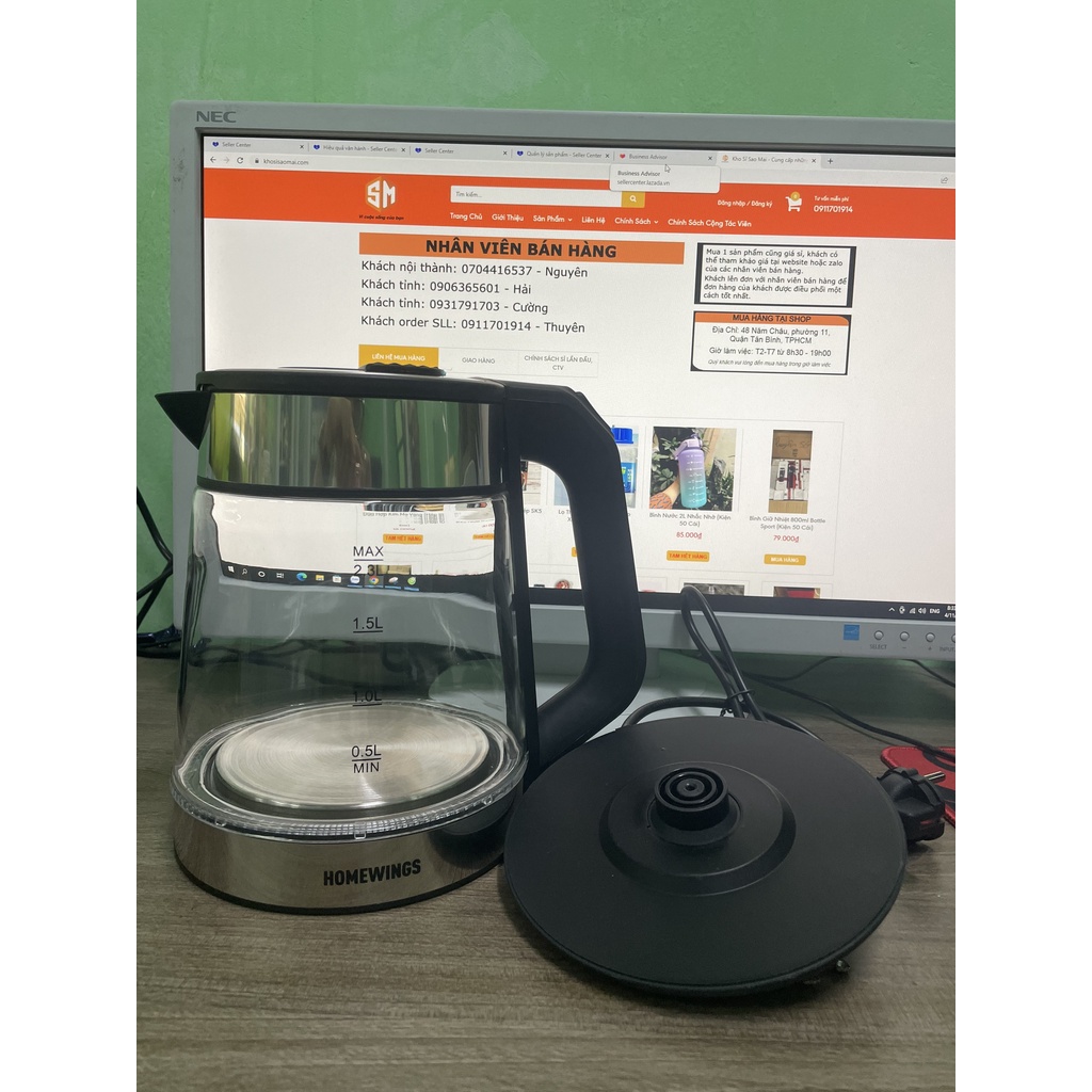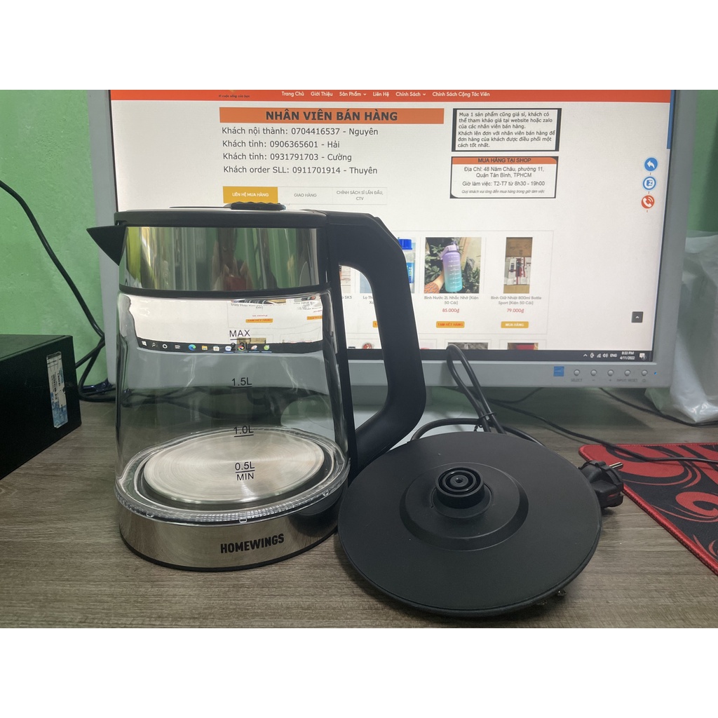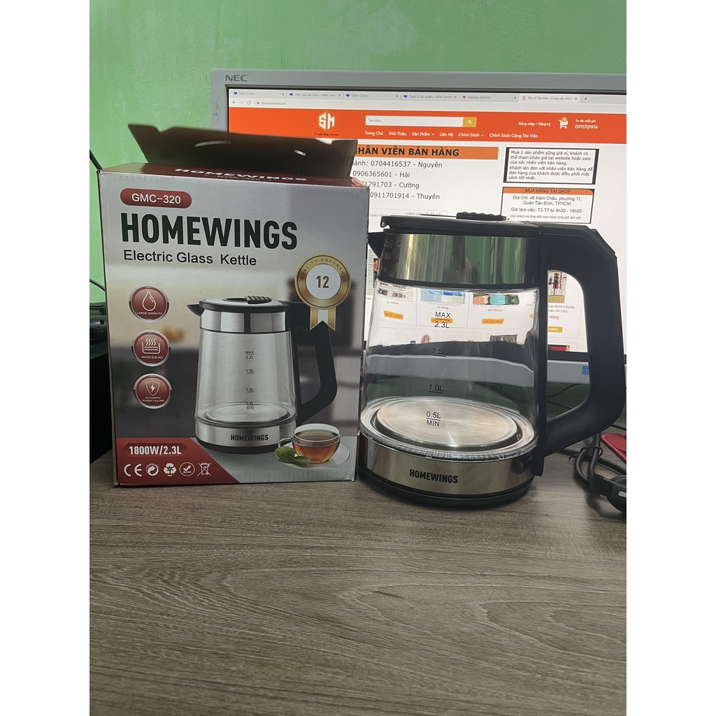 ẤM ĐUN SIÊU TỐC THỦY TINH 2.3L Homewing----------------------------------------------------------------------------