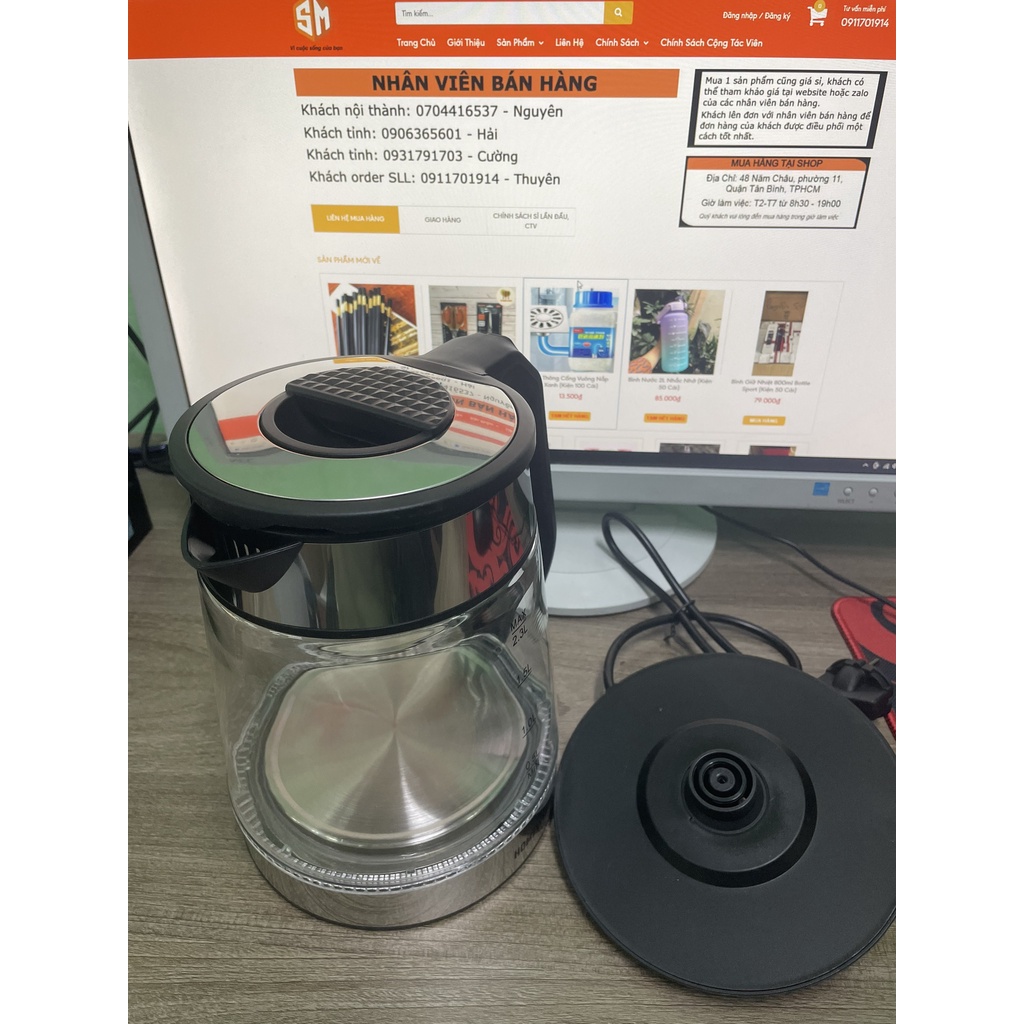 ẤM ĐUN SIÊU TỐC THỦY TINH 2.3L Homewing CÔNG SUẤT 1800W-ĐUN SIÊU NHANH