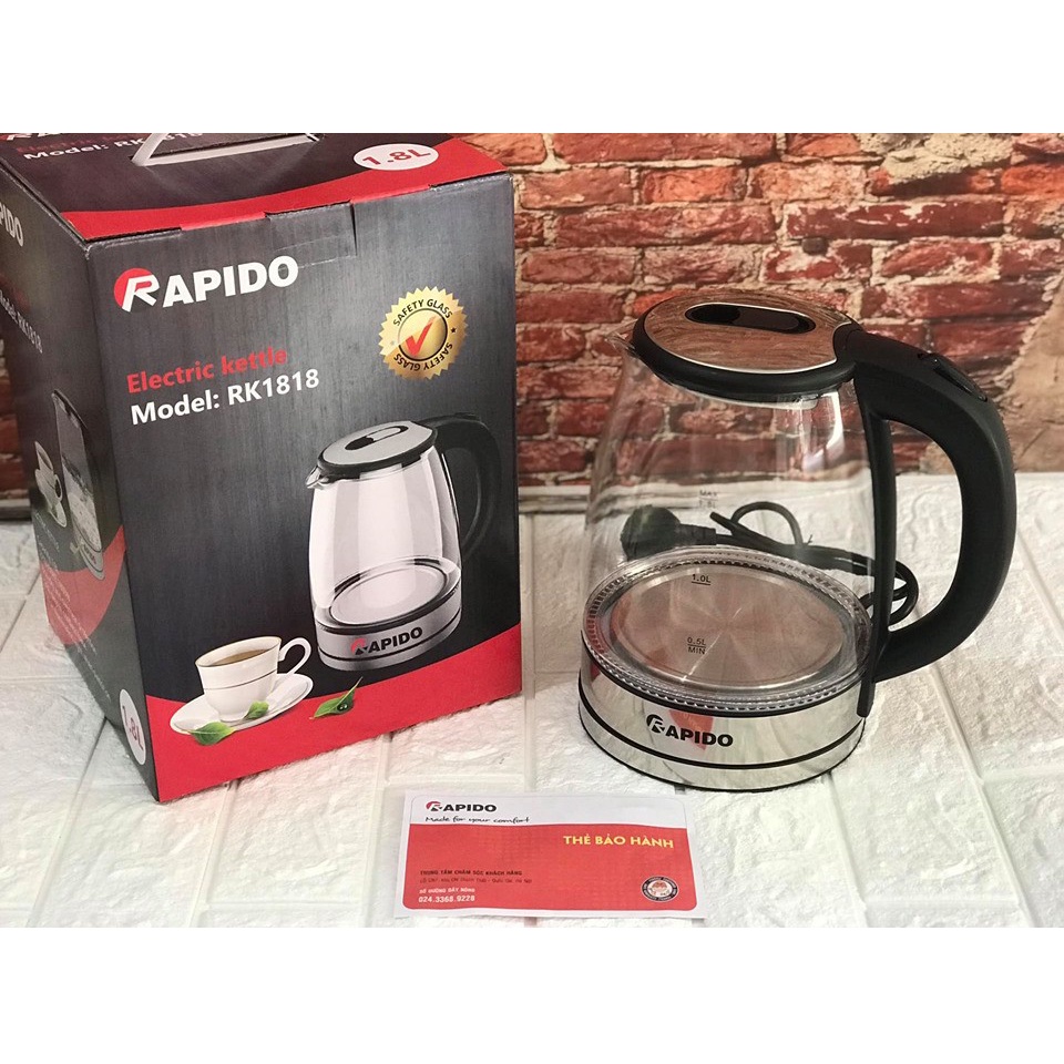 Ấm đun siêu tốc thủy tinh của Đức Thương hiệu Rapido RK1818 - Đun Siêu Tốc, Cao Cấp, Chịu Nhiệt - BH CHÍNH HÃNG