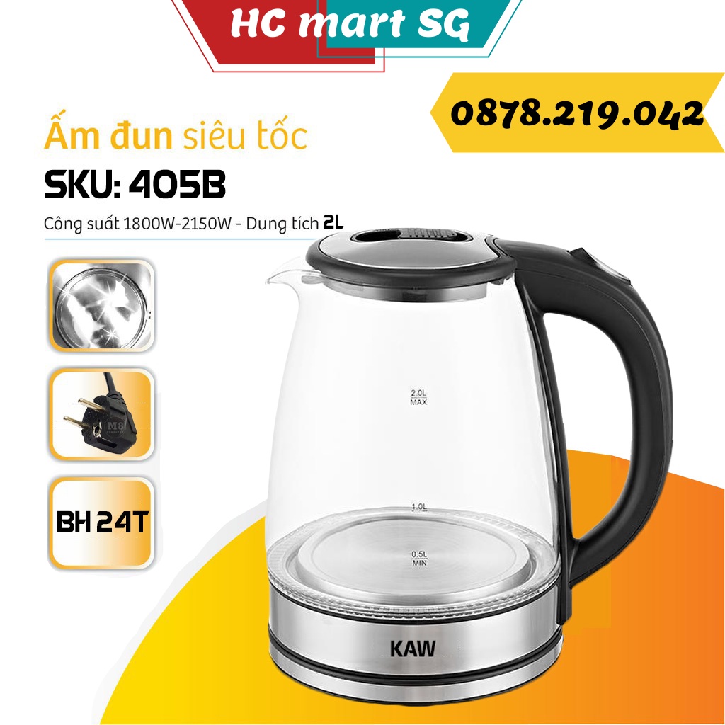 Ấm đun siêu tốc thủy tinh dung tích 1,8 Lit -Bình đun thủy tinh KAW/ Rapido - Công suất 1800W - BẢO HÀNH UY TÍN