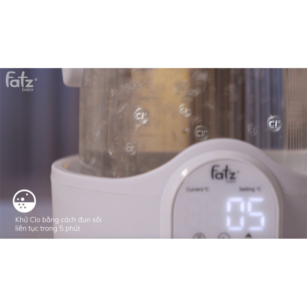Khử Clo tồn dư chỉ sau 5 phút: Trong nước máy sinh hoạt có một hàm lượng Clo nhất định dùng để tiệt trùng. Hàm lượng Clo trong nước quá cao, trẻ có nguy cơ bị ngộ độc Clo cấp tính vì hệ miễn dịch trẻ còn rất yếu. Máy FB525TN - QUICK 8 sẽ giúp mẹ an tâm hơn vì chỉ sau 5 phút, máy sẽ khử hết Clo tồn dư trong nước máy.