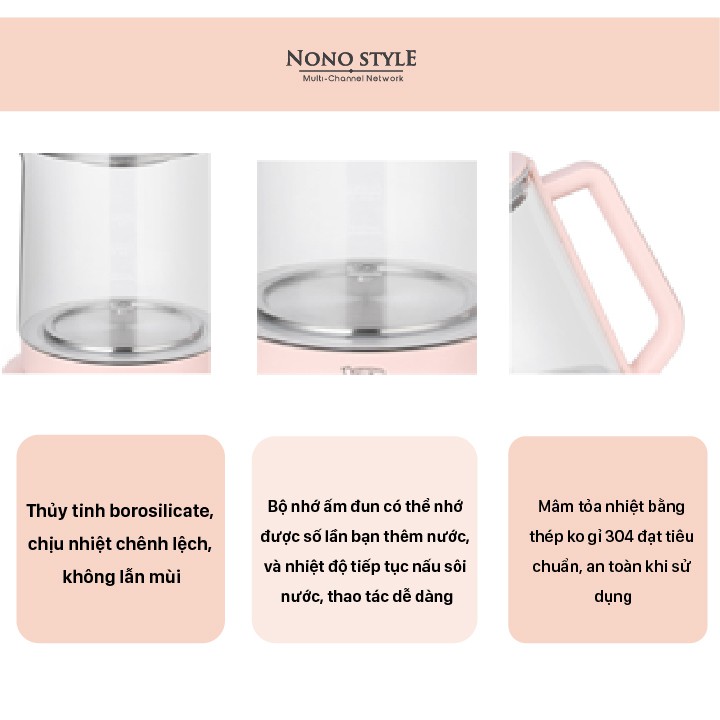 - Chất liệu ấm: Thủy tinh Borosilicate, chịu được sự chênh lệch nhiệt độ, không lẫn mùi