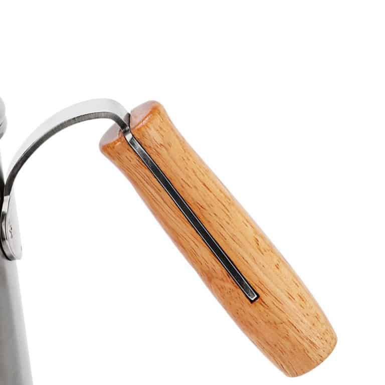 Bình inox cán gỗ pha cà phê pour over có vòi rót dài và nhỏ hình cổ ngỗng giúp Barista điều chỉnh, khống chế tốc độ nhanh chậm cũng như chủ động được vị trí, cách thức rót trong suốt quá trình pour cà phê.