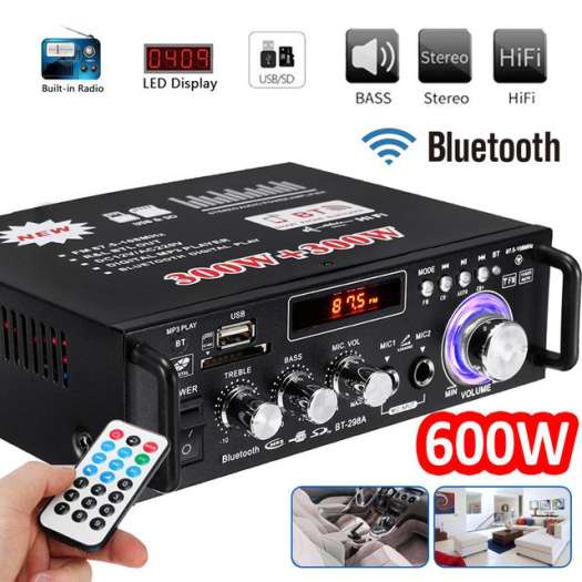 - Ampli kết nối không dây bluetooth 4.0 thông minh, điều khiển từ xa nhiều chức năng, sử dụng thuận tiện, gọn nhẹ hơn.