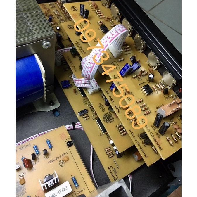 - Mạch nguồn dùng 4 tụ lọc lớn cho điện áp luôn ổn định, tản nhiệt nhôm to, dày đảm bảo amply tản nhiệt tốt khi kéo 4 loa cùng lúc.