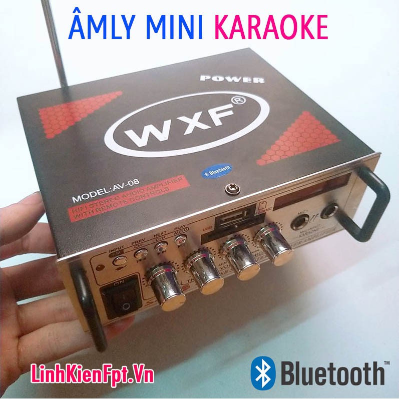Âm Ly karaoke Bluetooth Amly Xe Hơi 2 MIC AV-08BTĐẶC ĐIỂM NỔI BẬT: