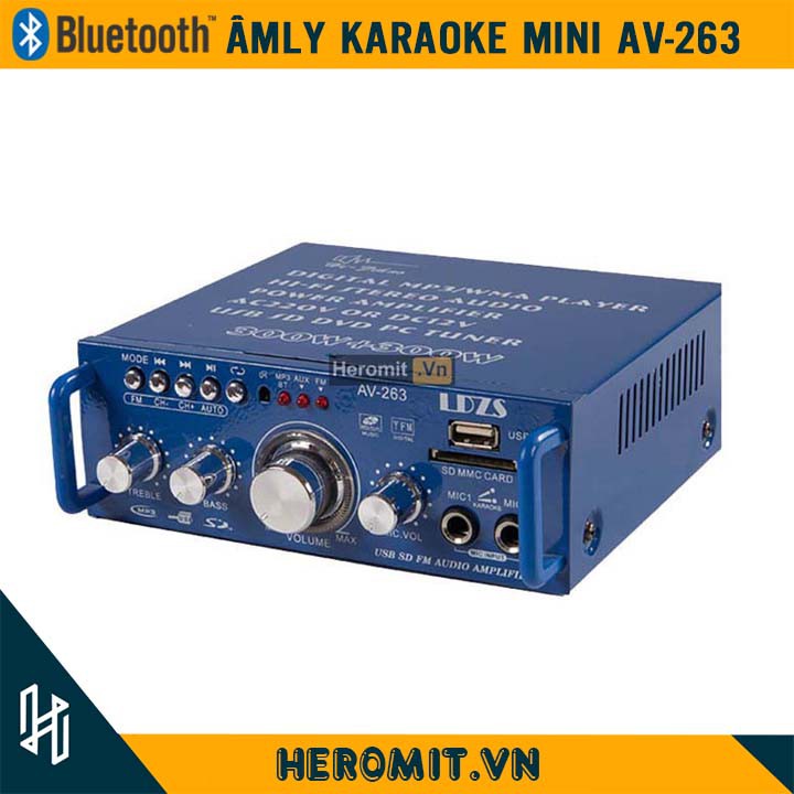 Âm Ly Mini Karaoke 2 MIC AV-263 Âm Ly Bluetooth Xe Hơi