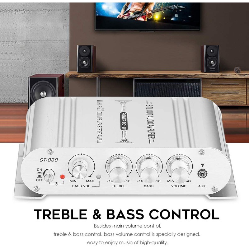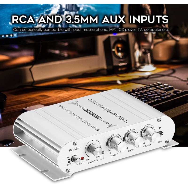 Âm Ly Mini St-838 12V Hi-Fi 2.1 Dùng Cho Xe Ô Tô, Xe Máy, Dàn Âm Thanh Gia Đình