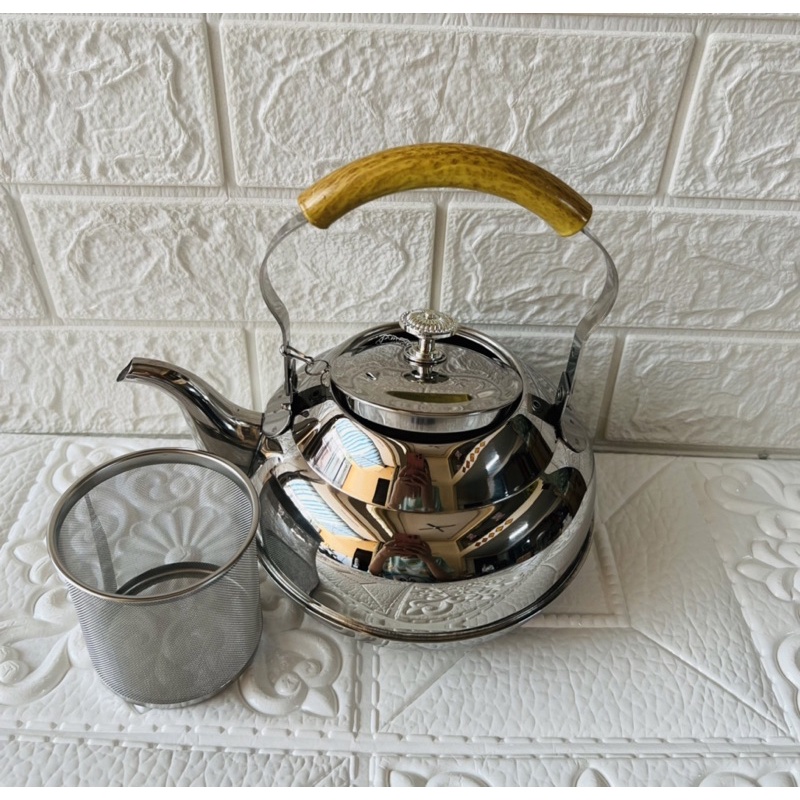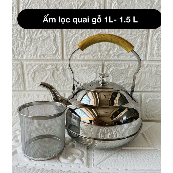 Ấm nấu có lọc inox 304 quai giả gỗ cao cấp