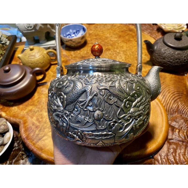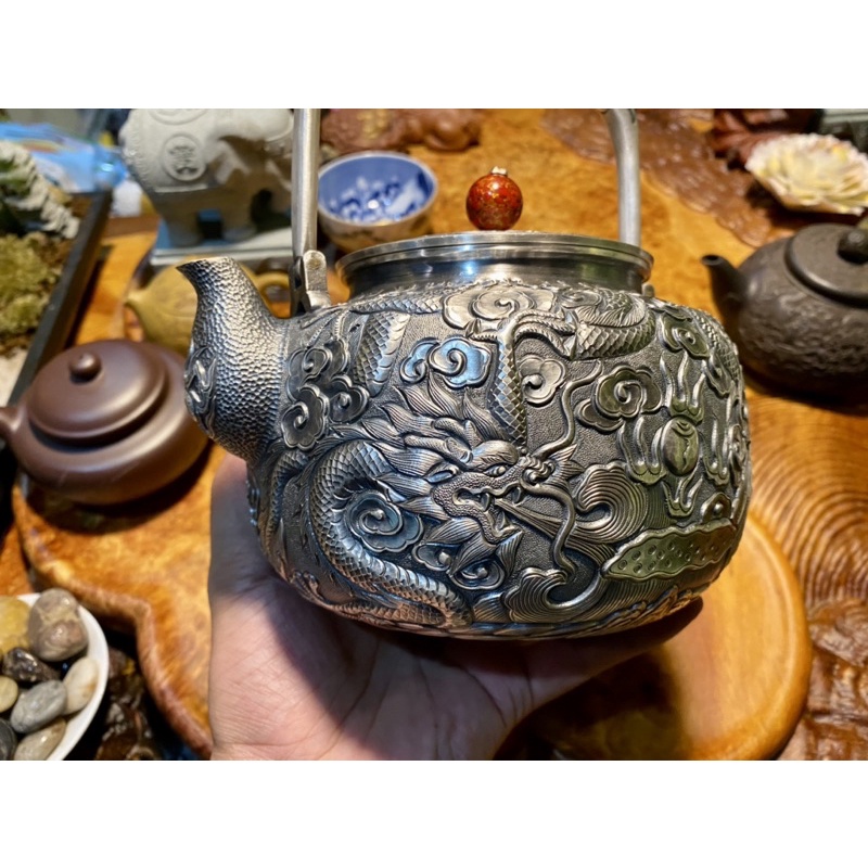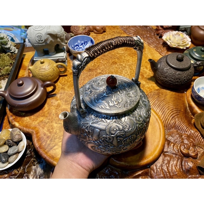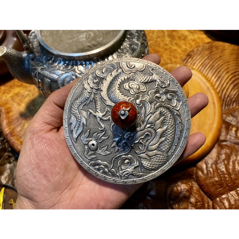 Nhà cửa & Đời sống > Dụng cụ nhà bếp > Dụng cụ pha trà, cà phê || Ấm Nấu Nước Chạm Ngũ Long Thủ Công Cao Cấp Bằng Bạc 999%Còn hàng