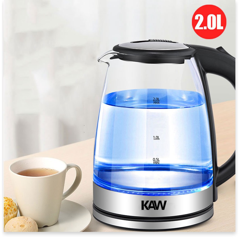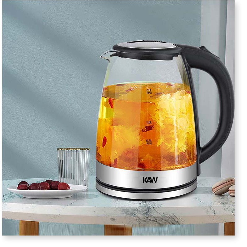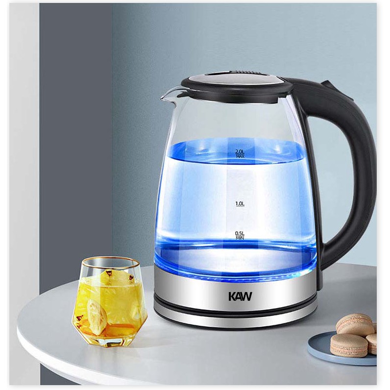 Ấm Nấu Nước KAW RK1818 ✔️Chính Hãng✔️ dung tích 2L, tiết kiệm điện, bình thủy tinh trong suốt, nước nóng siêu nhanh.