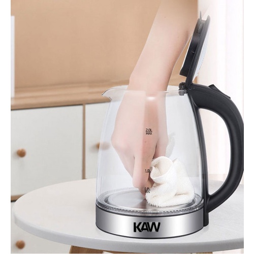 Ấm nấu nước siêu tốc,Ấm đun nước siêu tốc KAW dung tích 2L, tiết kiệm điện, bình thủy tinh trong suốt, có đèn Led