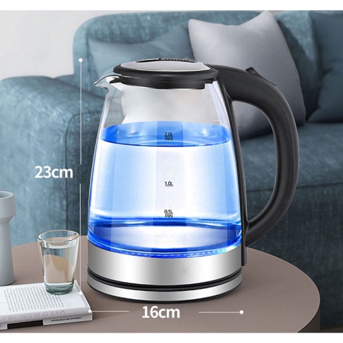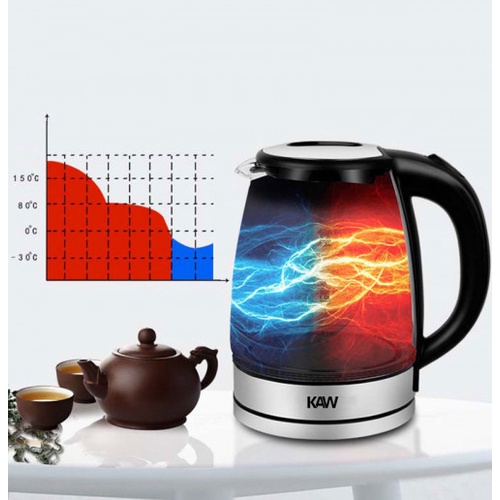 Ấm nấu nước siêu tốc,Ấm đun nước siêu tốc KAW RK1818 dung tích 2L, tiết kiệm điện, bình thủy tinh trong suốt, có đèn Led