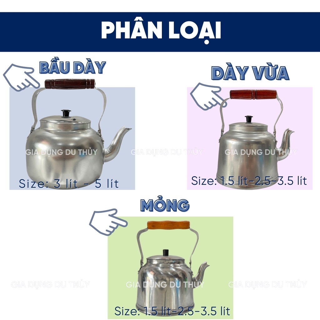 Giới thiệu Ấm nhôm đun nước, nấu sắc thuốc Tân Đức Thành, dung tích 1.5l - 5l, nhôm dày an toàn sức khỏe của gia dụng Du Thủy