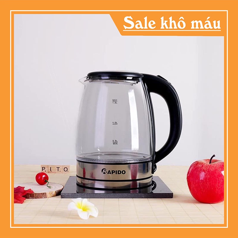 Ấm nước, Bình đun siêu tốc giá rẻ, Bình Đun Siêu Tốc Rapido RK1818, 1.8L, An Toàn, Chịu Va Đập Cao, Công Suất 1800W