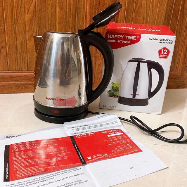 Ấm nước siêu tốc Happy time 1,8l Bình đun siêu tốc inox cách nhiệt HTD1081