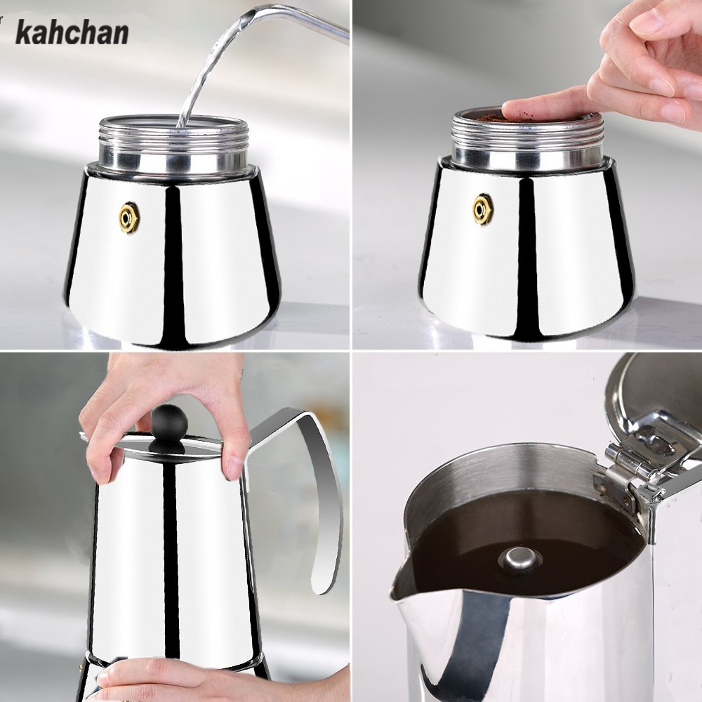 Với thiết kế nhỏ gọn, tiện lợi, ấm pha cà phê Moka Pot Kahchan sẽ giúp việc pha cà phê hằng ngày của bạn trở nên đơn giản hơn. Các bộ phận của ấm có thể tháo rời để vệ sinh dễ dàng sau mỗi lần sử dụng.