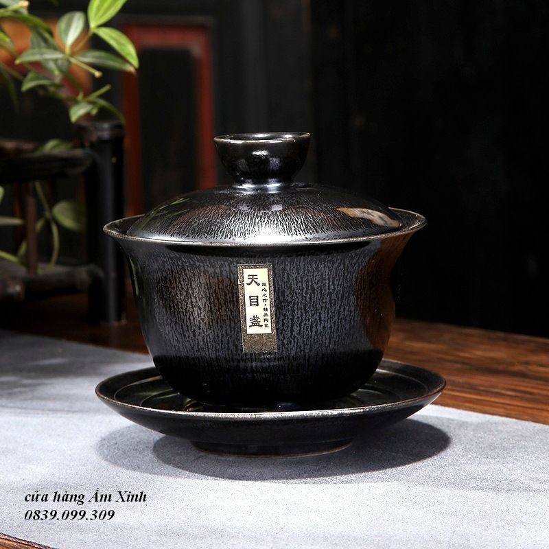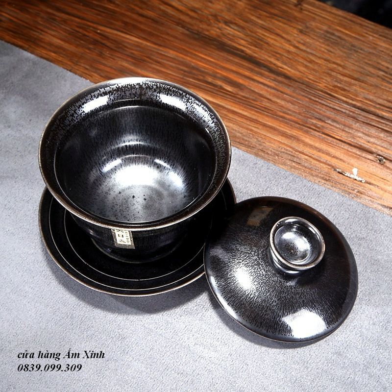 – Chất liệu: Gốm Kiến Châu, tráng men thiên mục du Trích