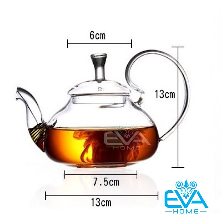 Giới thiệu Ấm Pha Trà Thuỷ Tinh Chịu Nhiệt Quai Cong Kèm Lõi Lọc Lò Xo 550 Ml