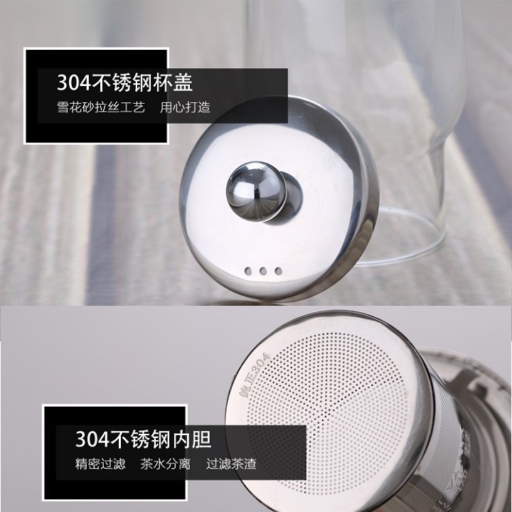 Ấm pha trà thủy tinh chịu nhiệt lõi lọc inox 304 cao cấp bao gồm: