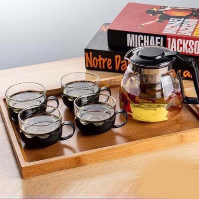 Ấm Pha Trà Thủy Tinh Kèm 4 ly, lưới lọc Inox 304