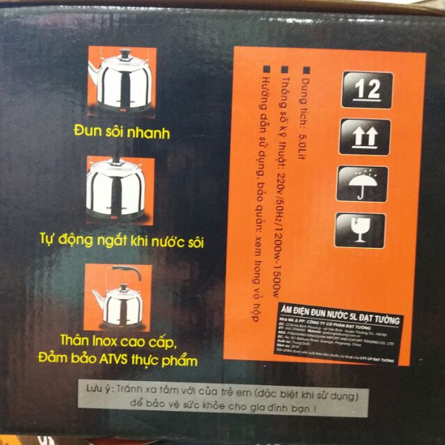 Sản phẩm: Ấm siêu điện / siêu tốc dung tích lớn 5LThương hiệu: Đạt Tường - Sản xuất tại Việt Nam