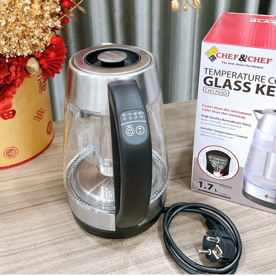 ẤM SIÊU SIÊU TỐC THUỶ TINH CHEF&CHEF CH1730D CAO CẤP KÈM LÕI LỌC ĐIỀU KHIỂN NHIỆT ĐỘ NƯỚC