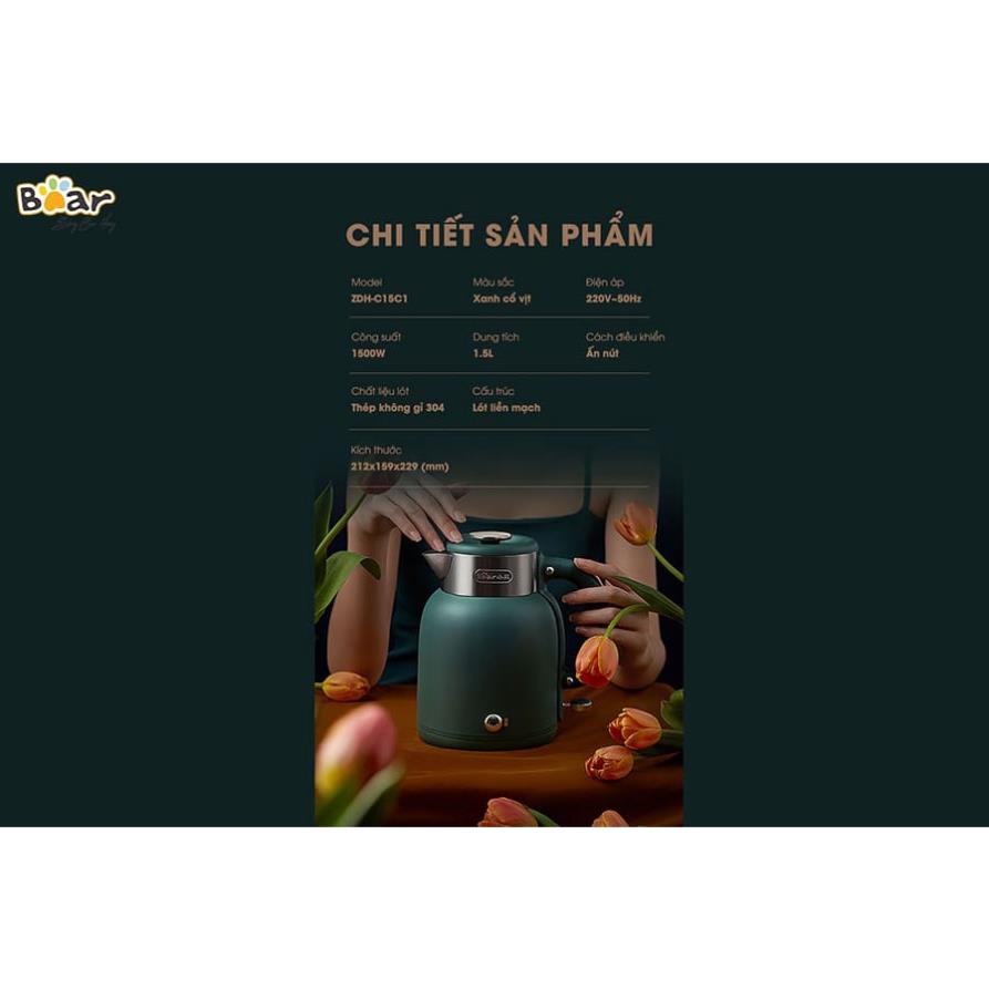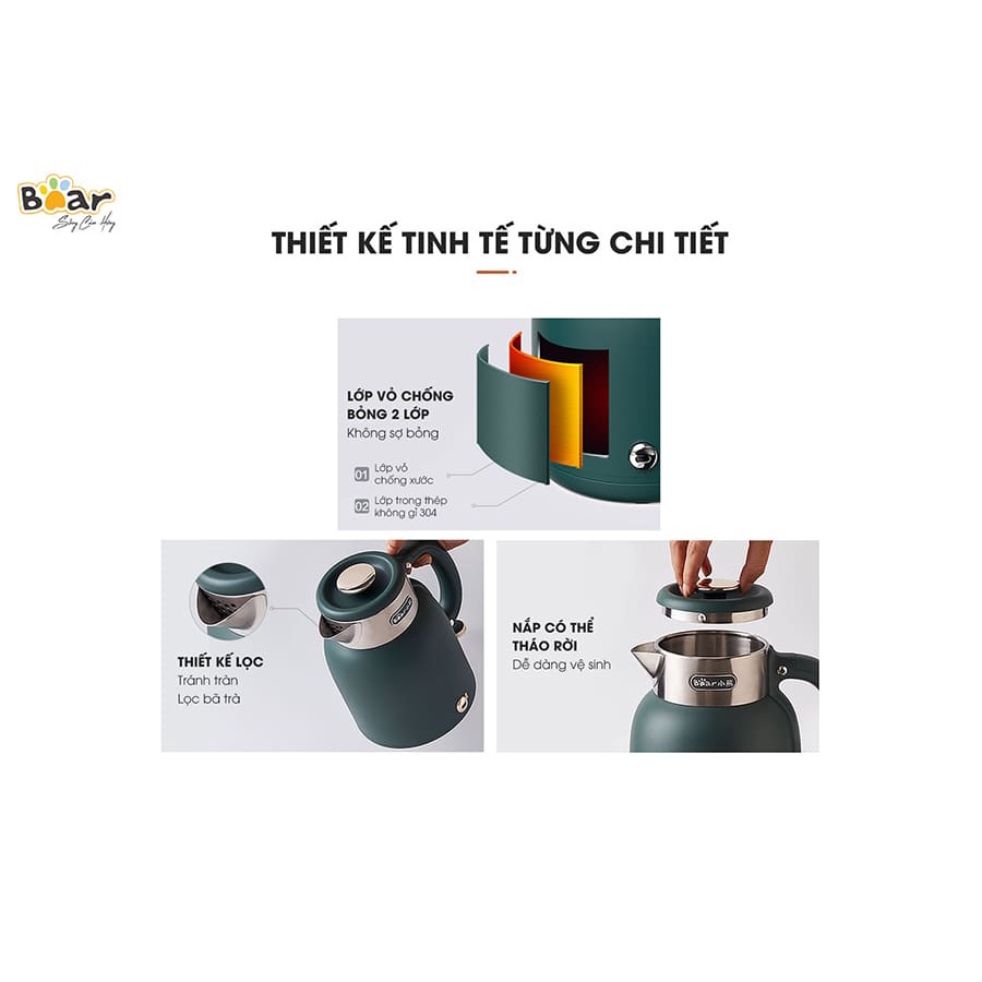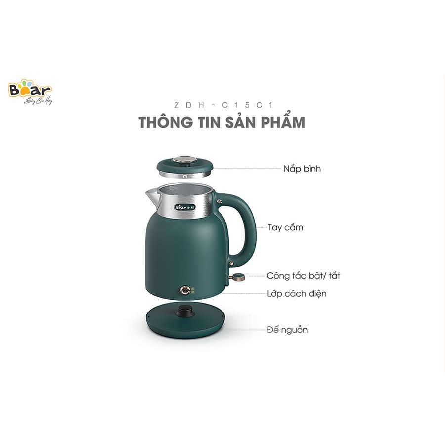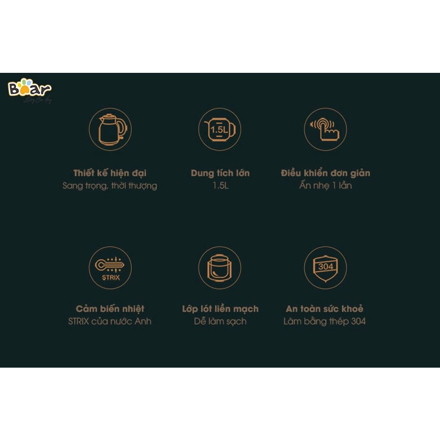 Ấm siêu tốc 1.5L Bear bình đun siêu tốc lõi inox cao cấp công nghệ làm nóng nhanh an toàn Gia dụng Bear Tuli Mart