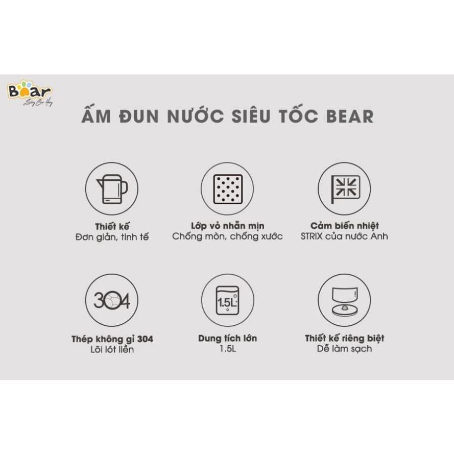 Ấm siêu tốc 1.5L Bear bình đun siêu tốc lõi inox cao cấp công tắc tự ngắt có đèn báo hiệu Gia dụng Bear Tuli Mart