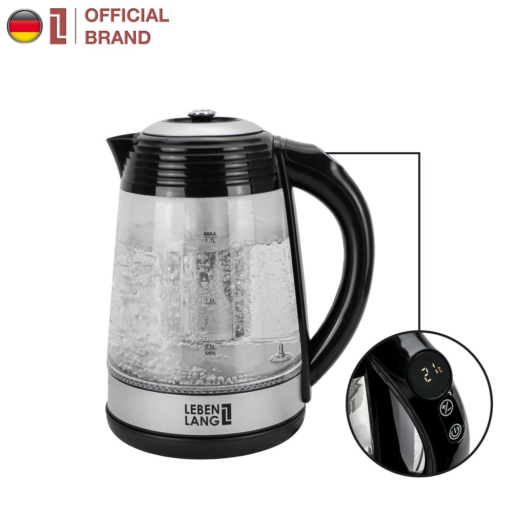 Ấm siêu tốc 1.7L bằng inox 304 LEBENLANG, điều khiển nhiệt độ, bảo hành 2 năm - LBE2662