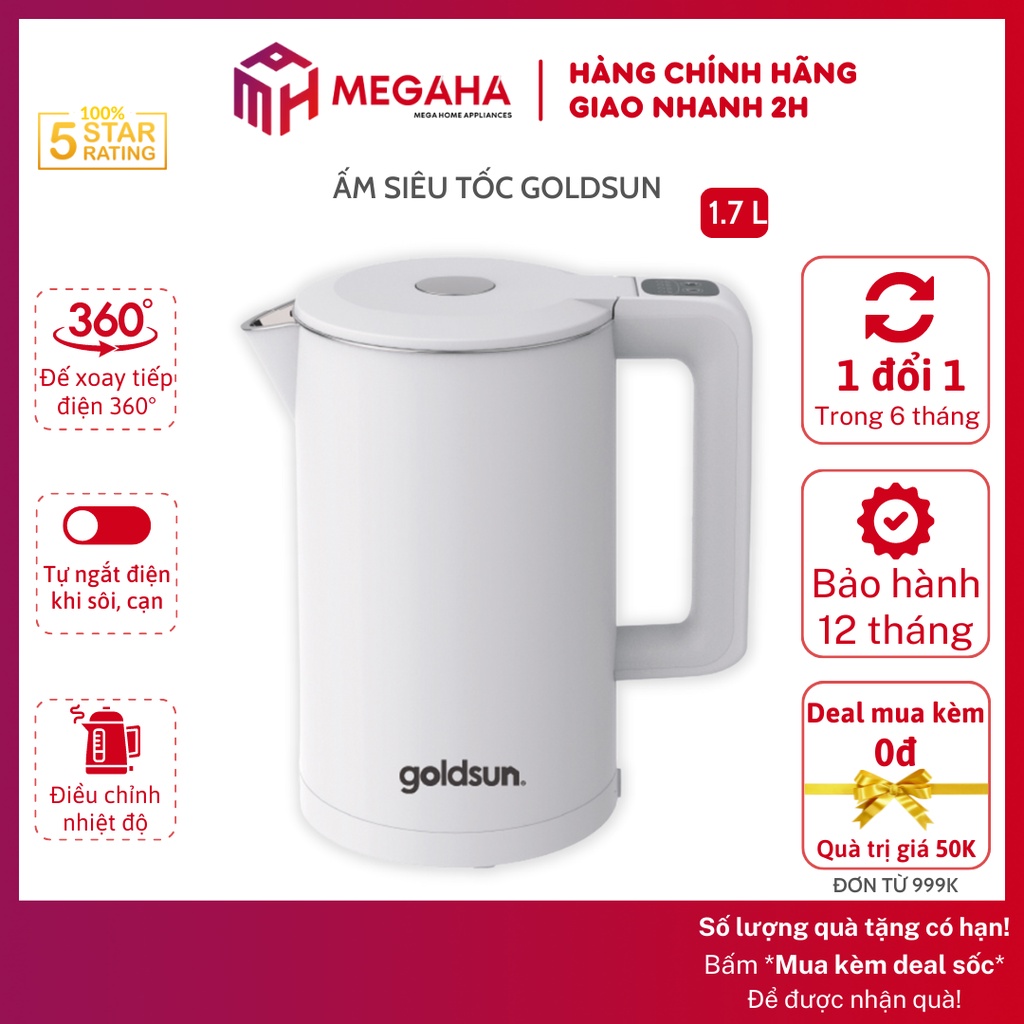 Thiết Bị Điện Gia Dụng > Đồ gia dụng nhà bếp > Ấm đun siêu tốc || Ấm siêu tốc 1.7L Goldsun GKT2642 - MEGAHACòn hàng