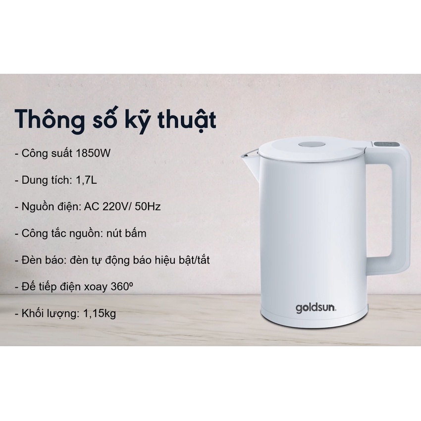 Ấm đun siêu tốc Goldsun GKT2642, bình đun siêu tốc 1.7L, bảo hành 12 tháng