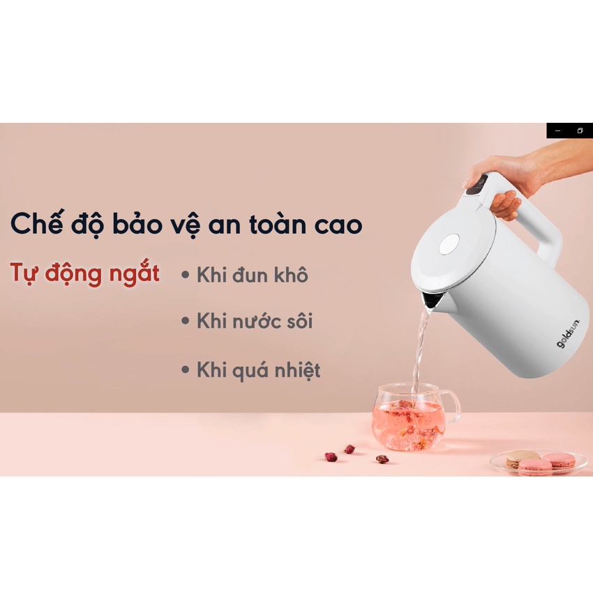 Giới thiệu Ấm đun siêu tốc Goldsun GKT2642, bình đun siêu tốc 1.7L, bảo hành 12 tháng