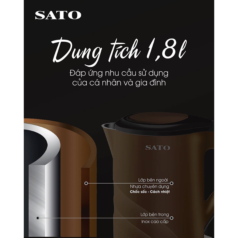 Giới thiệu [Mã ELHADEV giảm 4% đơn 300K] Ấm siêu tốc 1,8L SATO Việt Nhật 17ST62, công nghệ Việt Nhật cao cấp