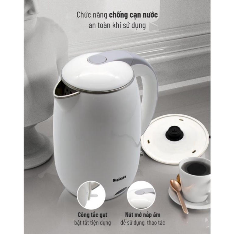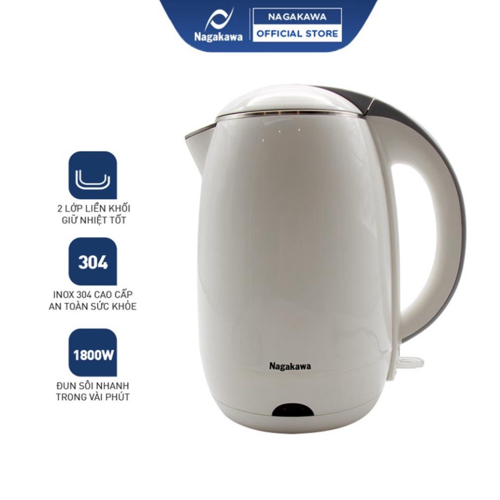 Ấm siêu tốc 2 lớp 1,8L Nagakawa NAG0314 - Hàng chính hãng - Bảo hành 12 tháng