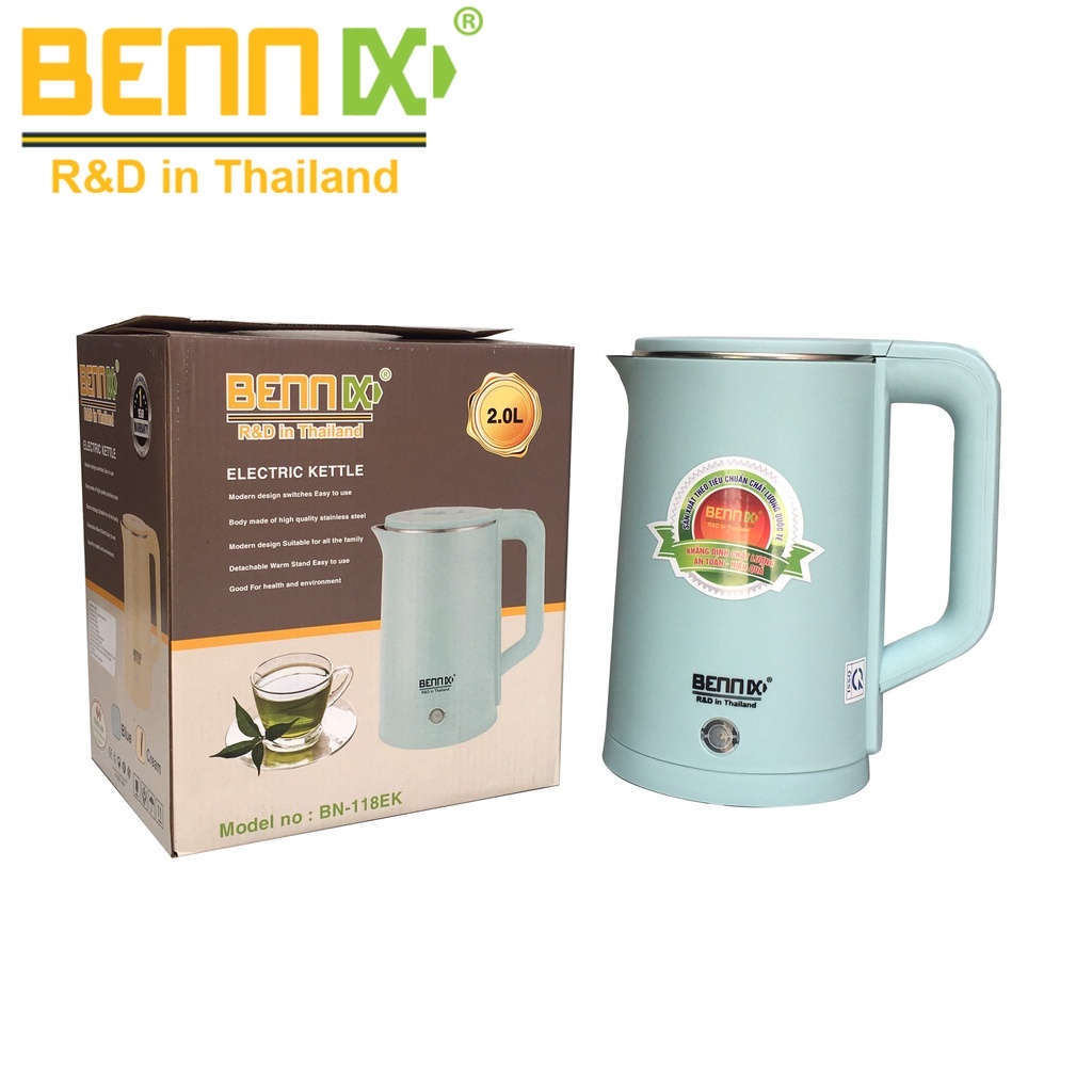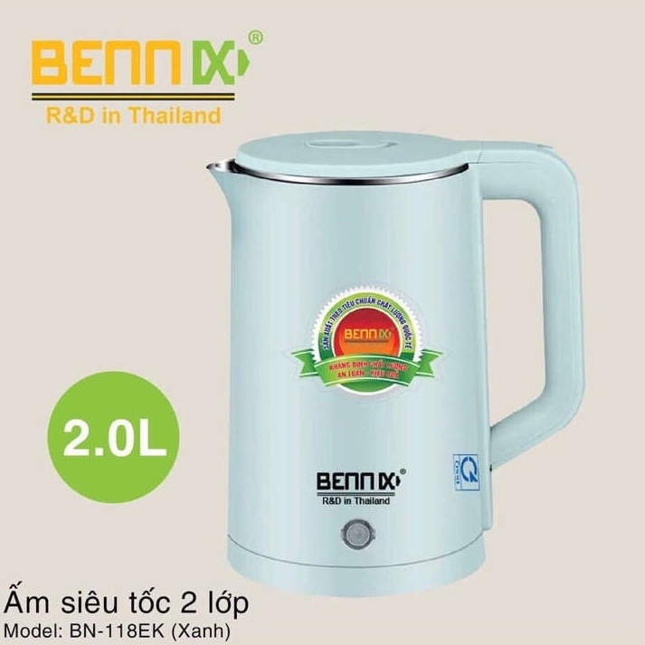 Ấm siêu tốc 2 lớp Bennix Thái Lan BN-118EK dung tích 2 lít (Xanh ngọc)