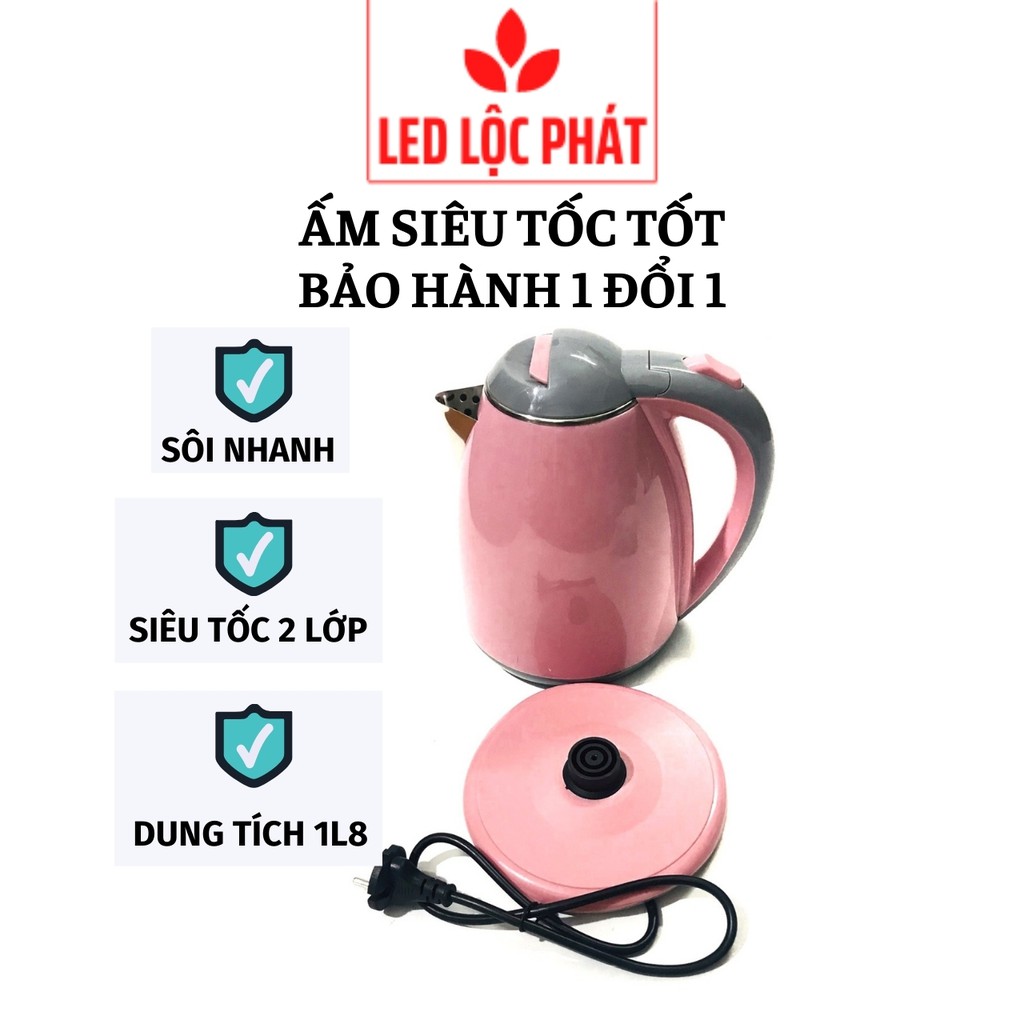 Ấm siêu tốc 2 lớp, bình đun siêu tốc 1L8
