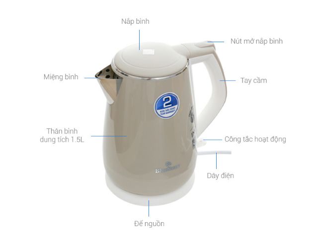 Sản phẩm thuộc phân khúc cao cấp của hãng Bluestone nhé cả nhà. Công suất 1800-2100W dùng đun cực nhanh, chỉ khoảng 5phut là có 1 ấm nước nóng 100 độ (các ấm bình thường công suất chỉ đạt 1500W). Thân ấm có 2 lớp: lớp trong là inox304 không chứa sắt, đảm bảo an toàn không lo thôi nhiễm sắt vào nước đun, lớp ngoài là nhựa tráng nhìn óng ánh rất đẹp, lớp nhựa giúp chống nóng nữa, nếu nhà bạn có trẻ em hãy sử dụng loại 2 lớp như này để đảm bảo an toàn cho các bé nhé.Nói chung hàng của Bluestone thì cả nhà dùng cứ yên tâm, bao bền bao thích 😁 Thời hạn bảo hành 24 tháng là đủ thấy sự đảm bảo về chất lượng rồi.
