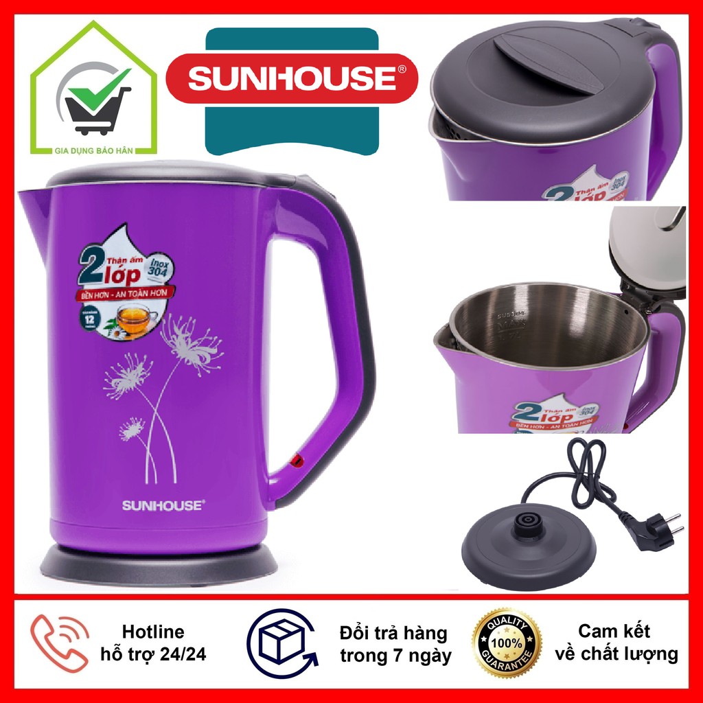Giới thiệu Ấm Siêu Tốc 2 Lớp Cách Nhiệt 1.7 Lít Sunhouse SHD1383, Bảo Hành 12 Tháng