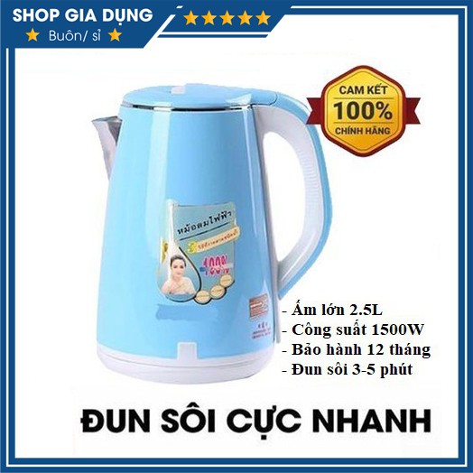 Thiết Bị Điện Gia Dụng > Đồ gia dụng nhà bếp > Ấm đun siêu tốc || Ấm Siêu Tốc 2 Lớp Cách Nhiệt Thái Lan 2.5L, Hàng Chuẩn Thái Lan Cao Cấp, Giao Màu Ngẫu Nhiên - Bảo Hành 12 ThángCòn hàng