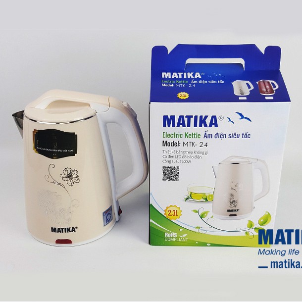 Thiết Bị Điện Gia Dụng > Đồ gia dụng nhà bếp > Ấm đun siêu tốc || [Mã ELHADEV giảm 4% đơn 300K] Ấm siêu tốc 2 lớp Matika MTK-24 vỏ bằng nhựa chống bỏng, lòng inox 304 không gỉCòn hàng