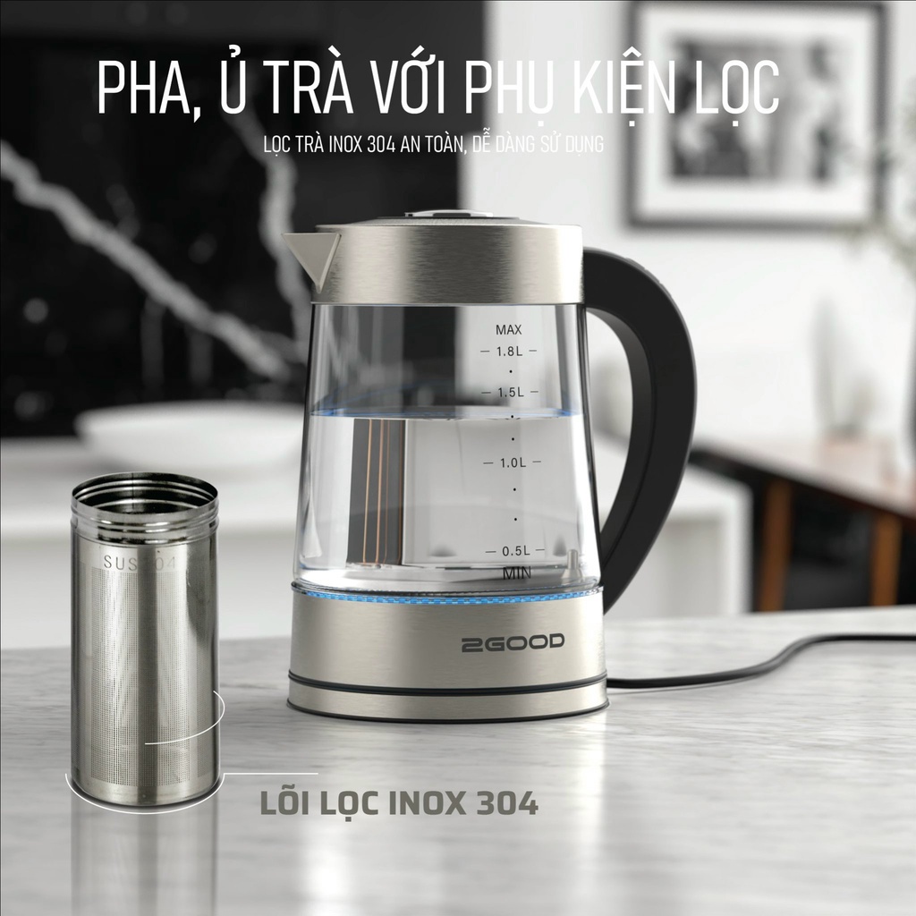 - Ấm siêu tốc 2GOOD G18 tích hợp tính năng tự động tắt khi nước sôi, khi quá nhiệt hoặc trong ấm không có nước giúp bảm vệ an toàn tuyệt đối cho người sử dụng.