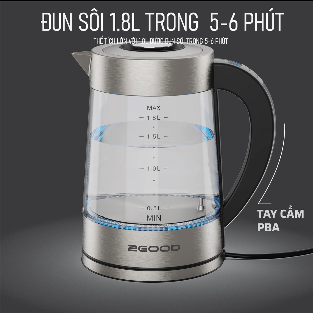 Ấm Siêu Tốc 2GOOD G18 1,8L Màn hình LED - Hàng Chính Hãng Bảo Hành 12 Tháng