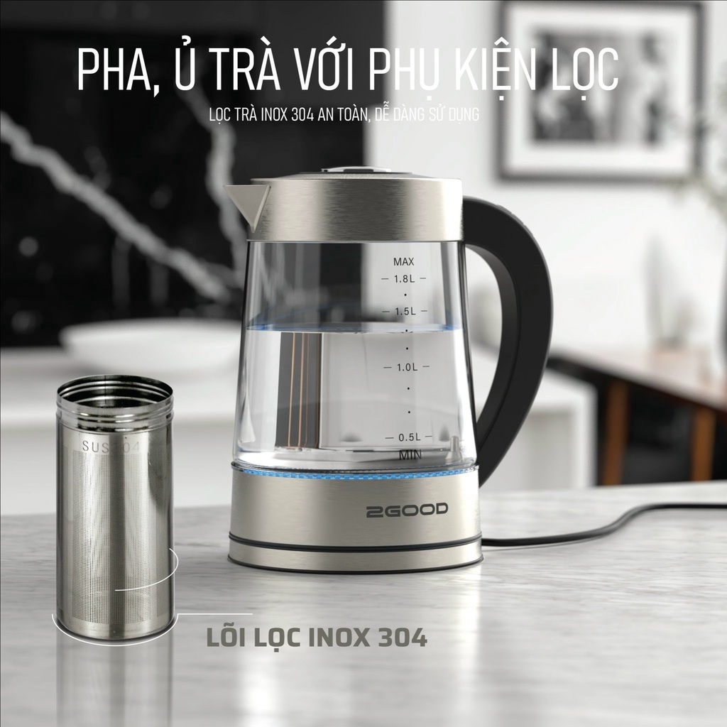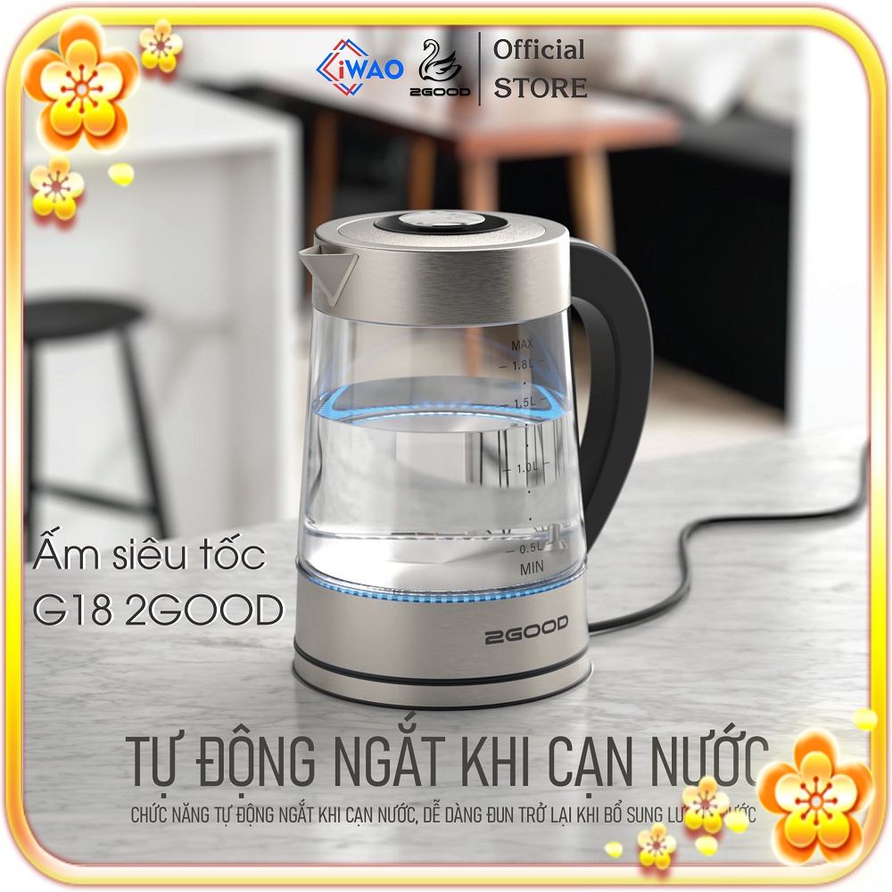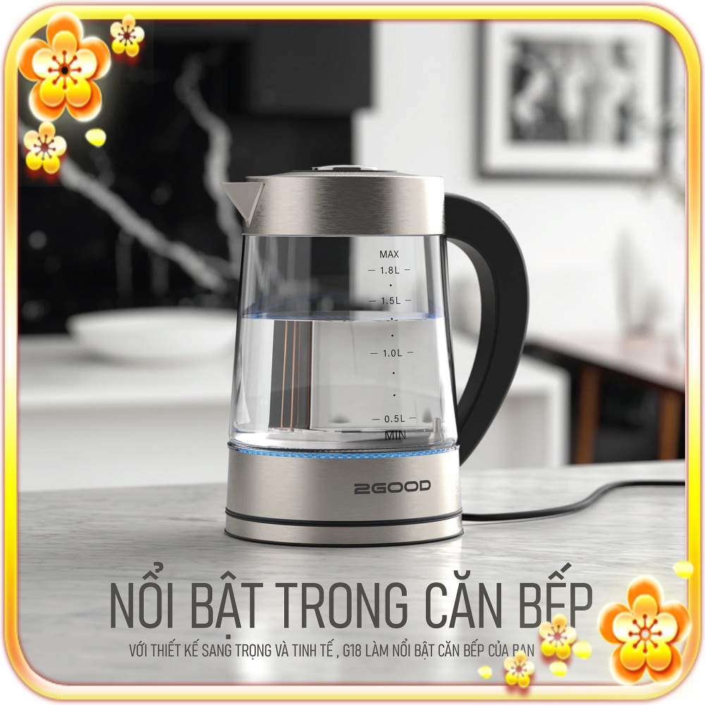 Ấm Siêu Tốc 2GOOD G18 (1,8L) Công Suất 1800W Mạnh Mẽ, Chức Năng Kiểm Soát Nhiệt Độ KeepWarm, Màn hình LED, Đế Xoay 360