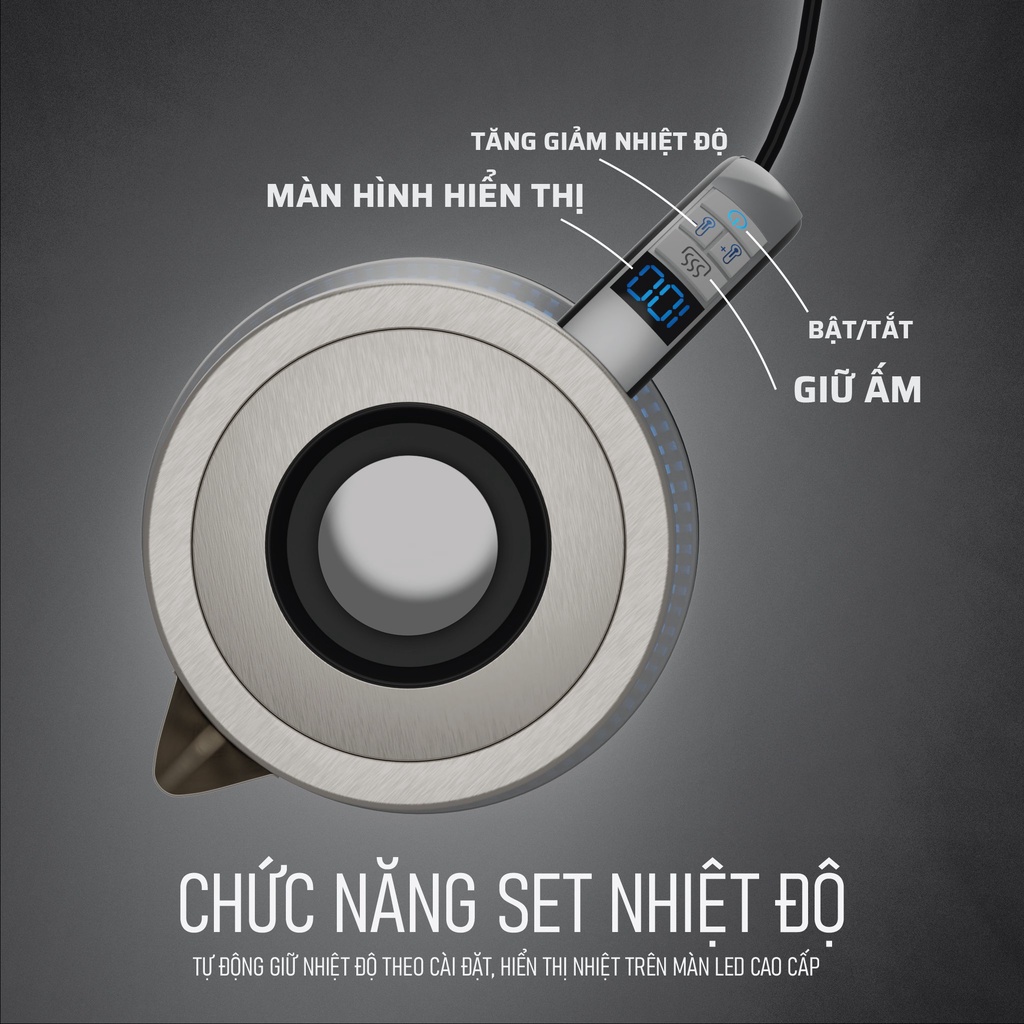 - CHỨC NĂNG SẢN PHẦM: Chức năng kiếm soát độ sôi với nhiều mức có thể lựa chọn 40°C đến 100°C