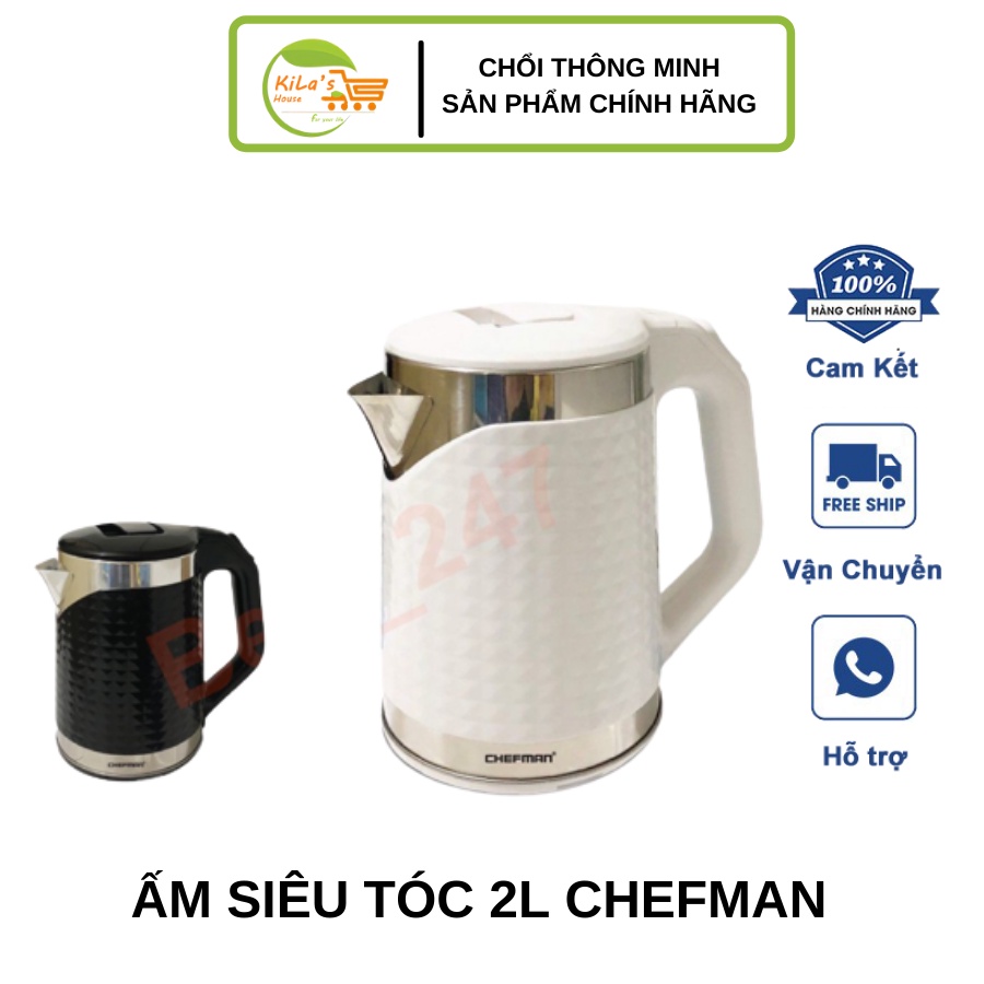 Ấm Siêu Tốc 2L Chính Hãng CHEFMAN, Cao Cấp, 2 Lớp, Bảo Hành 12 Tháng - Ấm Đun Nước Siêu Tốc Chefman