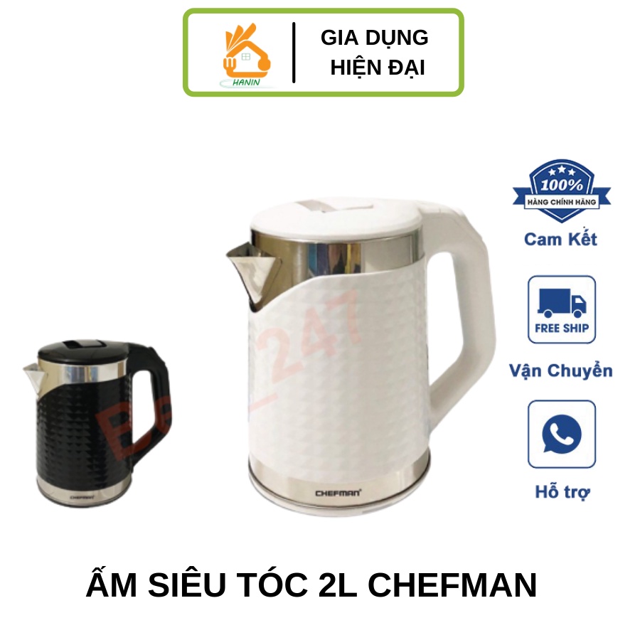 Ấm Siêu Tốc 2L Chính Hãng CHEFMAN , Cao Cấp , 2 Lớp , Bảo Hành 12 Tháng