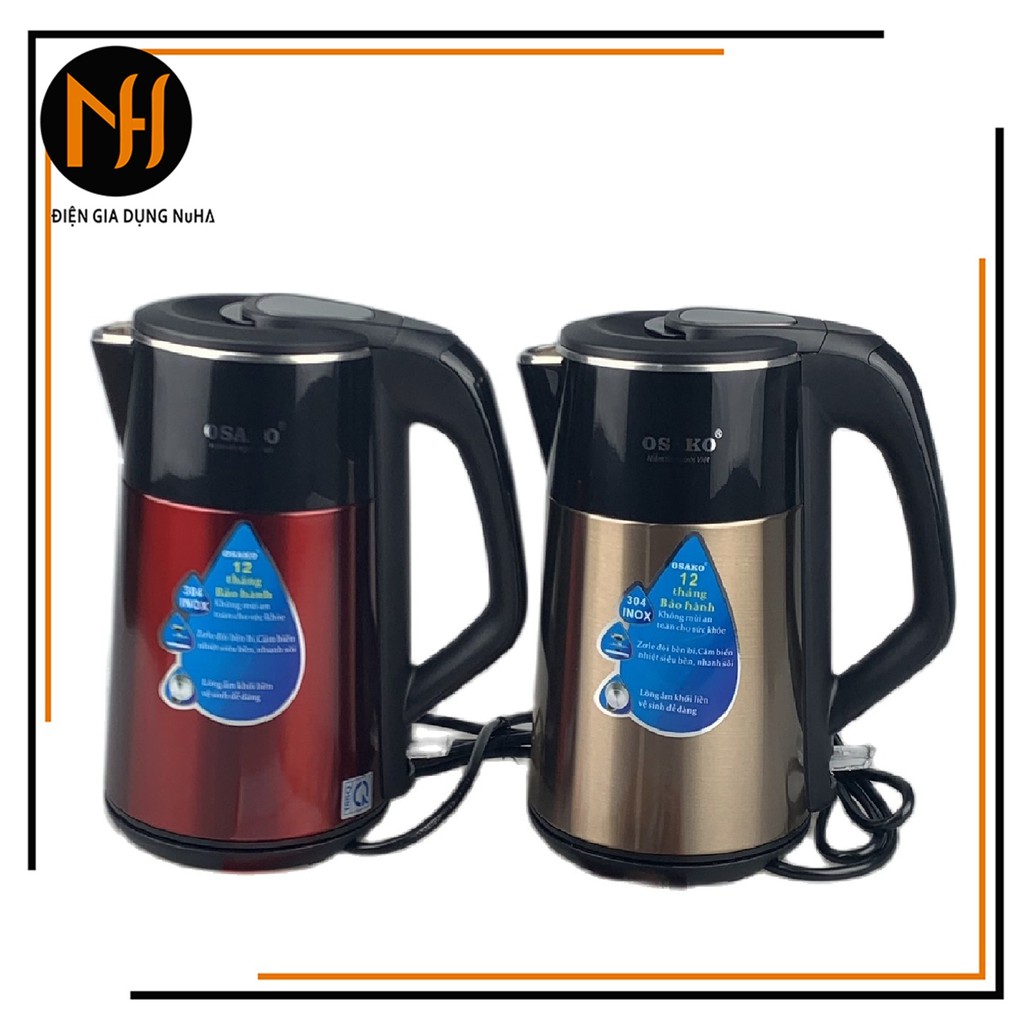Ấm Siêu Tốc 2L Inox 304 Nguyên Khối Osako OSA-300 Chống Bỏng 2 Lớp Công Suất 1500W Đun Nhanh Tiết Kiệm Điện