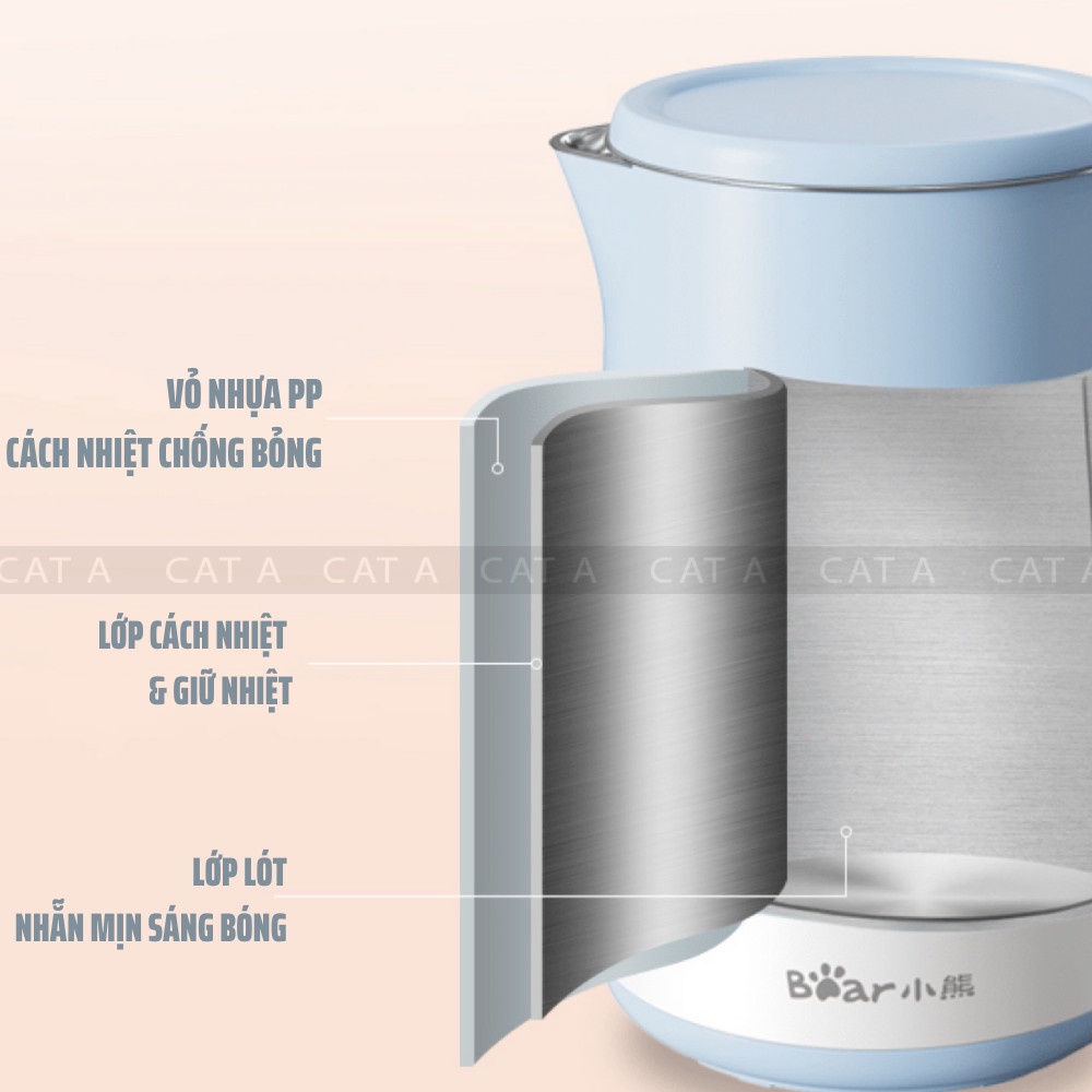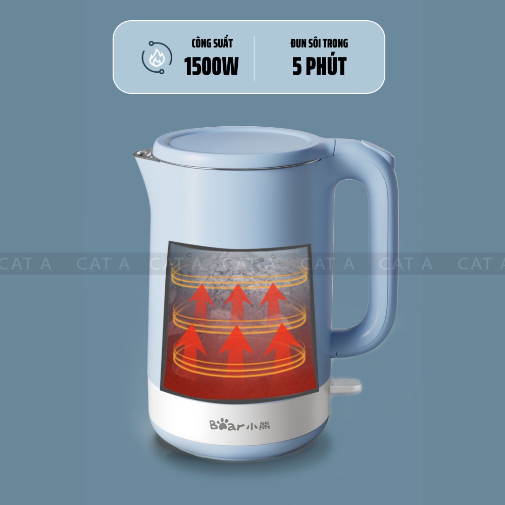 Ấm siêu tốc, ấm đun nước chính hãng Bear - ZDH-Q15J1, dung tích 1.5L - BẢO HÀNH CHÍNH HÃNG 6 THÁNG